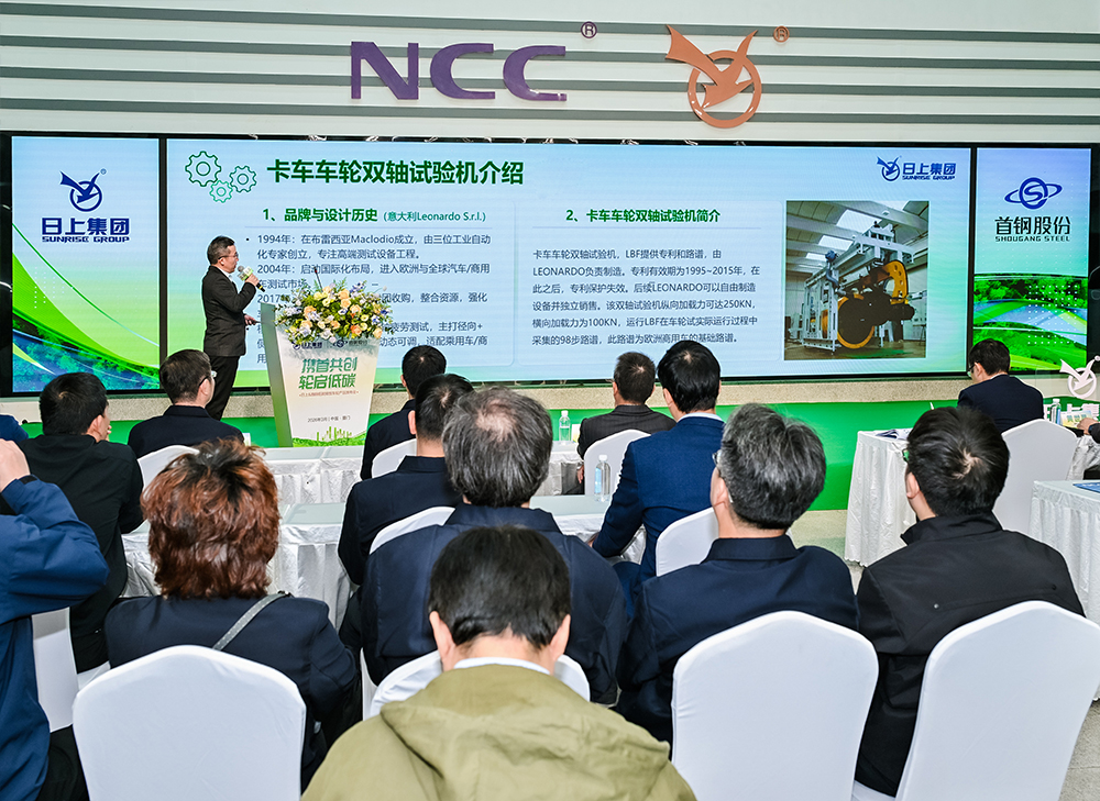 技術(shù)突破:引進國際先進設(shè)備,填補測試空白 本次發(fā)布會的一大亮點是日上集團正式引進了國際先進的意大利產(chǎn)雙軸疲勞測試設(shè)備。該設(shè)備可模擬卡車車輪在真實路況下的行駛受力,通過雙軸加載精準(zhǔn)復(fù)現(xiàn)輪輻與輪輞的應(yīng)力狀態(tài)。 配備爆胎預(yù)警等安全監(jiān)測系統(tǒng)及加速測試方法后,該設(shè)備能以1萬公里的測試量模擬30萬公里的真實磨損,有效填補復(fù)雜工況測試的空白。這不僅為驗證輕量化設(shè)計的可靠性提供了關(guān)鍵支撐,也將助力日上集團加強與國內(nèi)外主機廠的合作,保障高強、低碳排放鋼材的批量應(yīng)用,進一步鞏固其在車輪研發(fā)領(lǐng)域的技術(shù)優(yōu)勢。